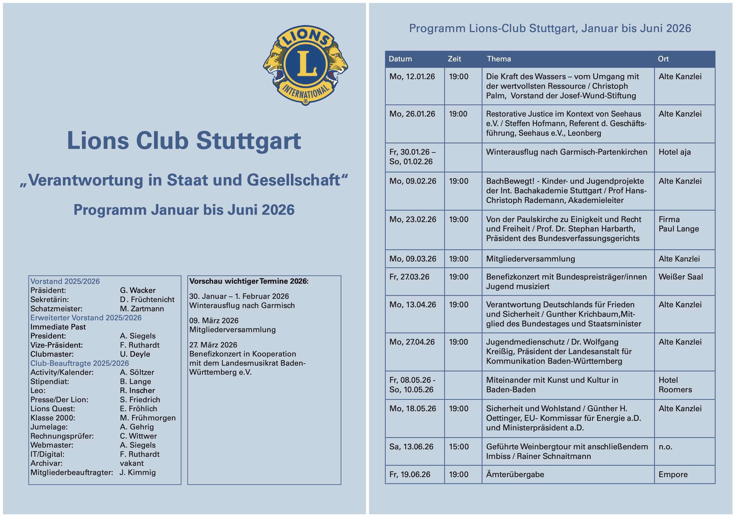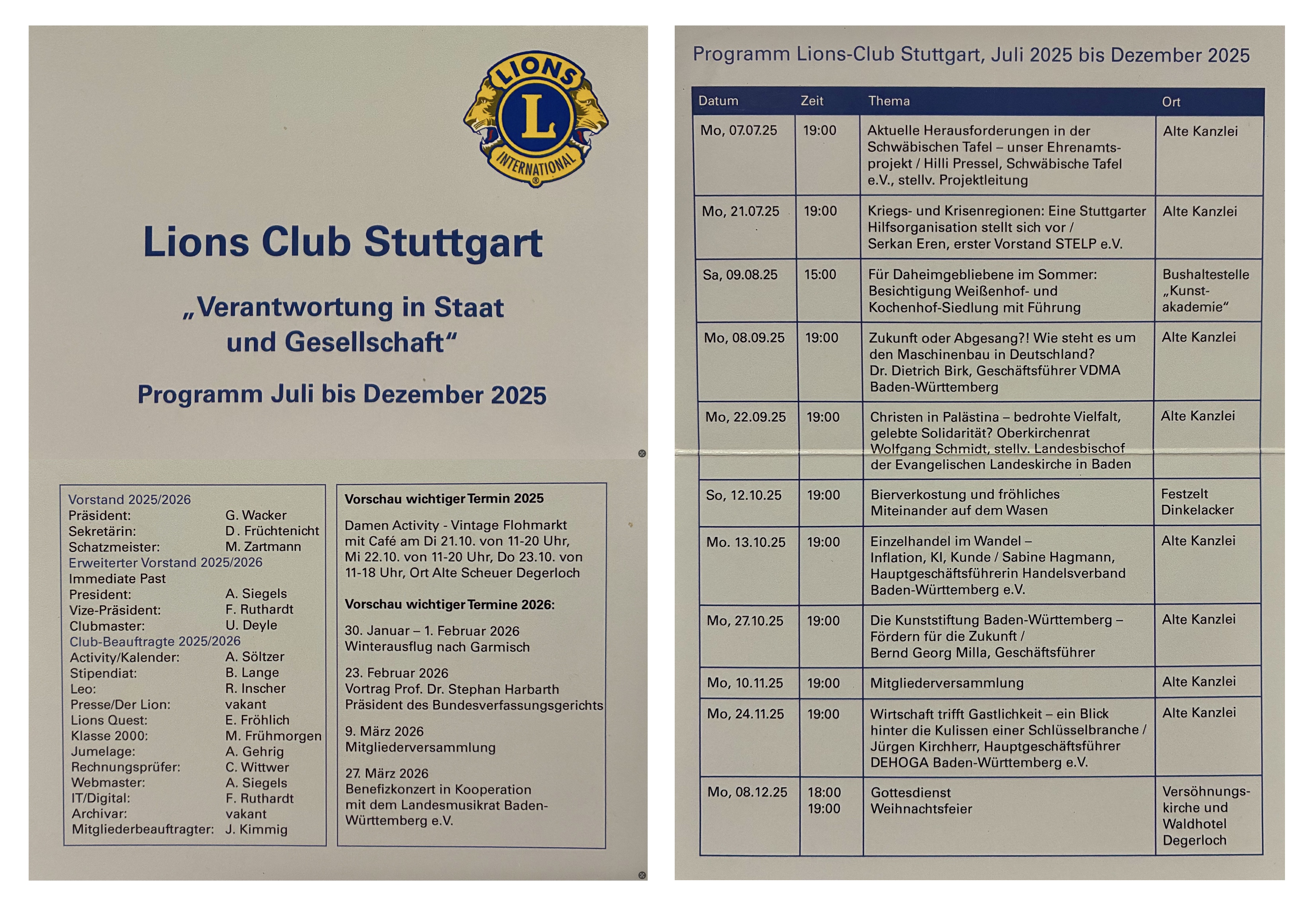 Unser Gründungspräsident, Dr. Helmut Eisemann, war ein früher und hoch aktiver Lion und führte so bereits wenige Jahre nach Kriegsende engagierte Persönlichkeiten für die Ideen von Lions im Lions Club Stuttgart zusammen.