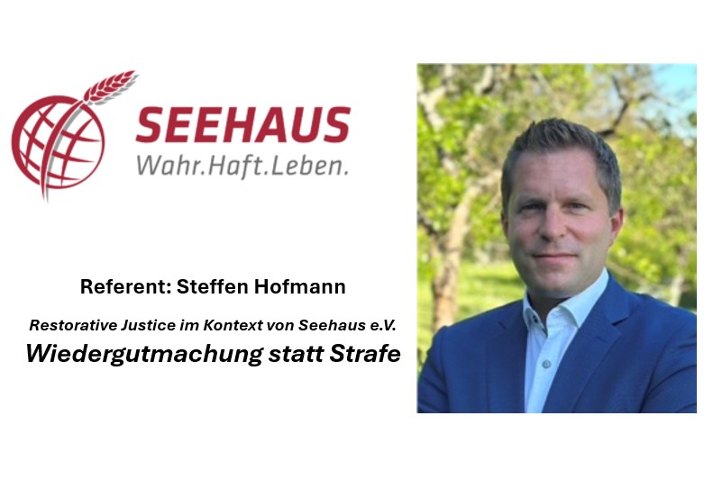 Am 26. Januar 2026 dürfen wir als Vortragenden Herrn Steffen Hofmann begrüßen, Referent der Geschäftsführung von Seehaus e.V. Leonberg. Er wird zu dem Thema "Restorative Justice im Kontext von Seehaus e.V. – Wiedergutmachung statt Strafe" referieren.